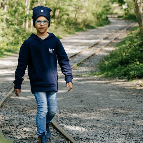 HEY. Nice to meet you. Dieser dunkelblaue Hoodie ist von innen kuschelweich und unheimlich gemütlich.